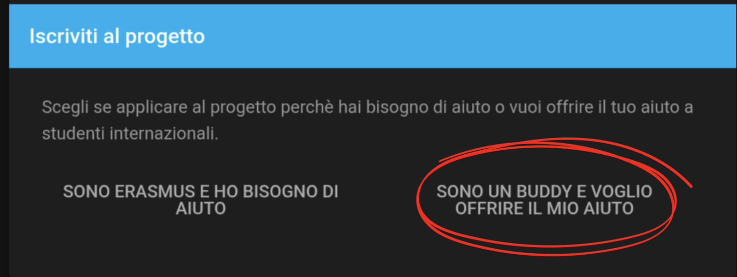 3. Seleziona la sezione "I AM A BUDDY AND WANT TO OFFER MY HELP"