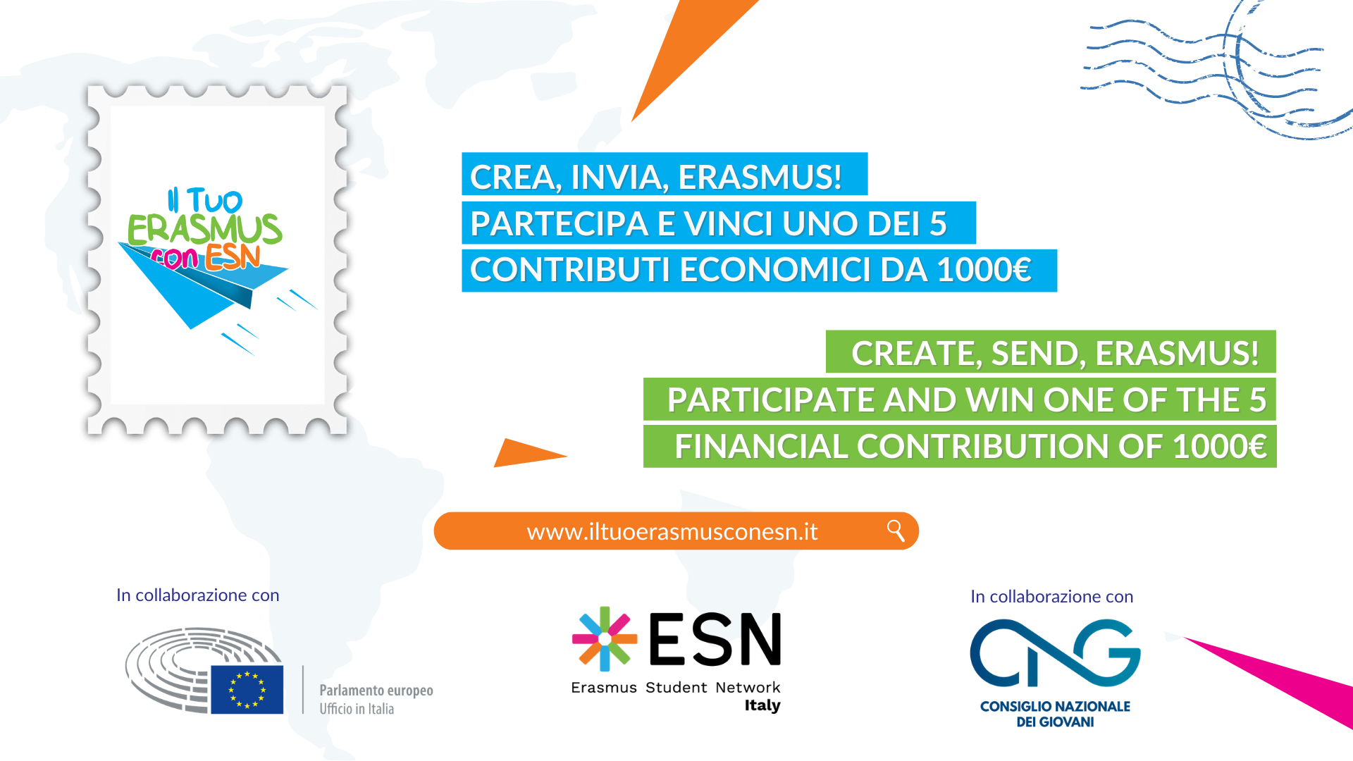 Then take part in “Il Tuo Erasmus Con ESN”, the ESN Italia contest in collaboration with Parlamento Europeo in Italia and Consiglio Nazionale Giovani, which is giving away 5 financial contributions of € 1.000€! From the 1st of July to the 15th of July you will have the opportunity to send us an essay in Italian or English based on the track that will be published.