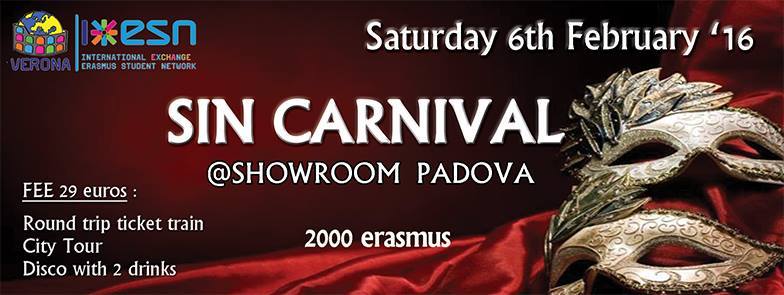 With the craziest Carnival Party: “SIN CARNIVAL” Organized by ESN PADOVA!!